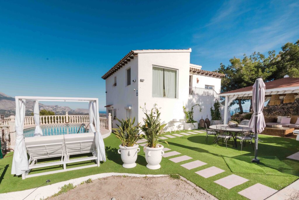Located in a quiet urbanisation on a hil between the Mediterranean sea and the mountain. Only 6 km from the Old town of Altea and 4 km from Albir where you can find a wide variety of restaurants, bars, souvenirs and shops. The interior is surrounded by picturesque towns such as La Nucia, Polop, Guadalest, etc
